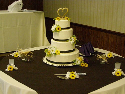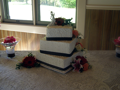 Wedding cakes are priced per slice. Please call Lisa to talk with her one on one. She will need to know some background information before she can provide you with a quote.