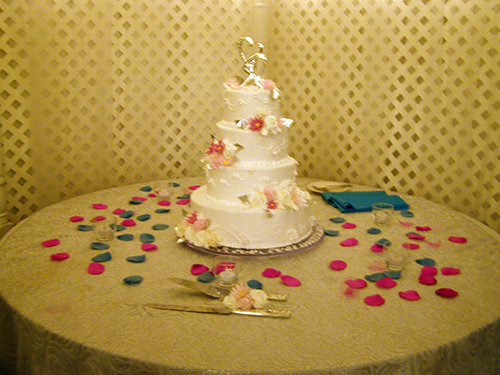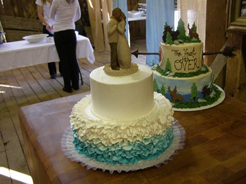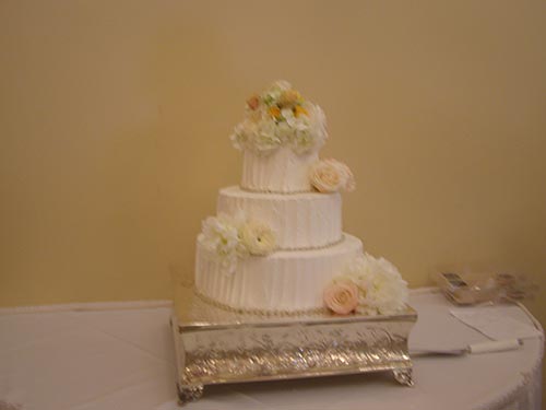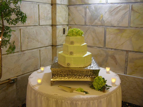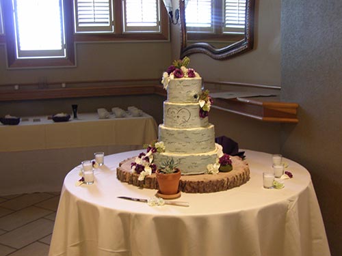 Wedding cakes are priced per slice. Please call Lisa to talk with her one on one. She will need to know some background information before she can provide you with a quote.